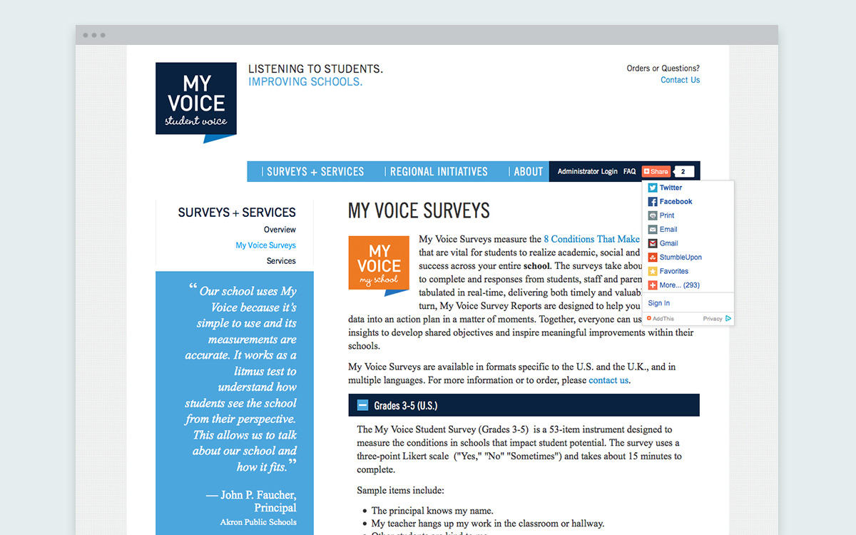 My Voice Student Survey is facilitated by the Quaglia Institute of Student Aspirations (QISA) and Pearson Foundation to measure students’ perceptions of school. The survey yields crucial data related to self worth, engagement and purpose – all vital to fostering student aspirations.