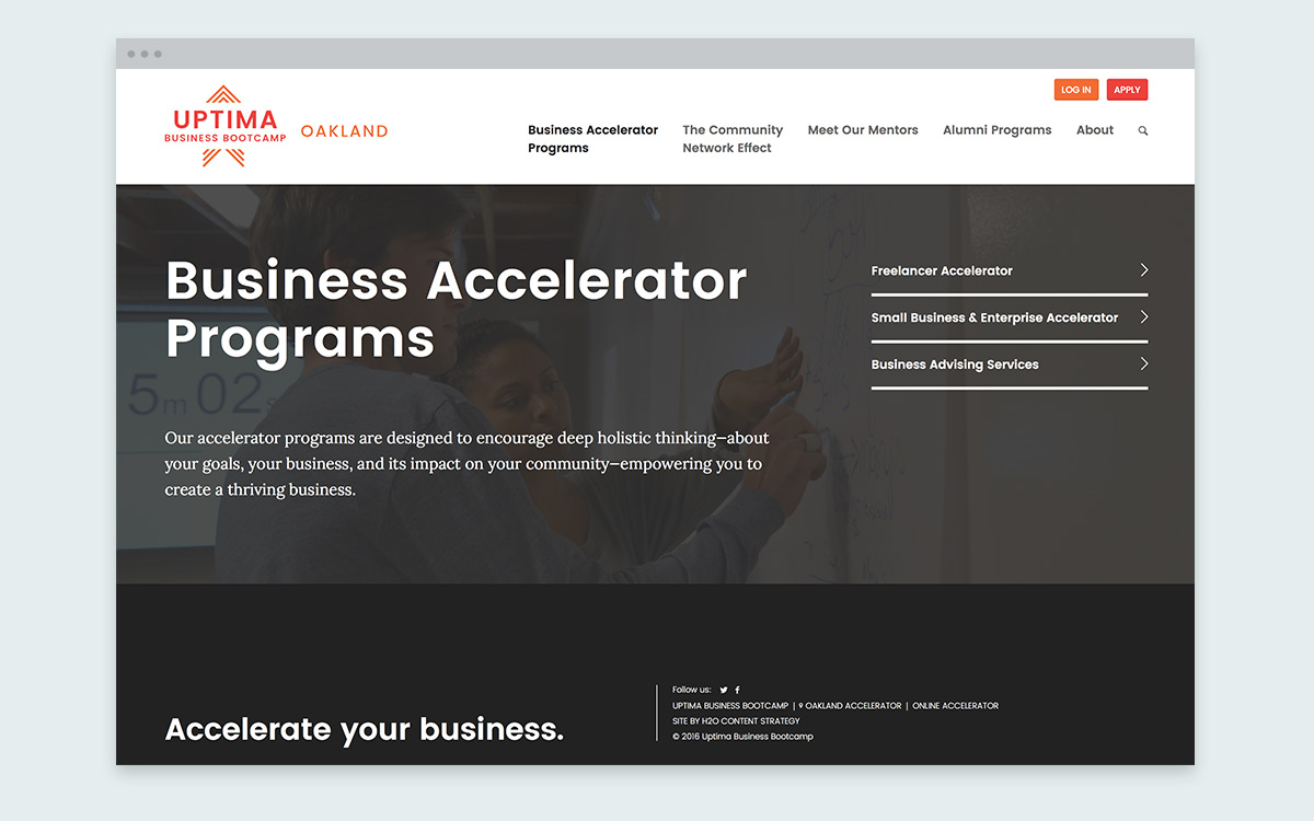 Uptima Business Bootcamp is an innovative member-owned business accelerator dedicated to providing entrepreneurs with greater access to hands-on education, resources and community to create thriving businesses.